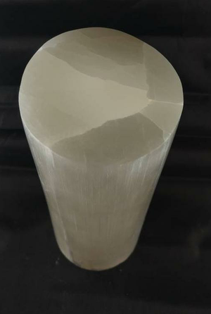 These beautiful lamps made of Moroccan selenite are perfect for a bedside table. Each lamp measures about 8 inches tall and 3 inches in diameter.
