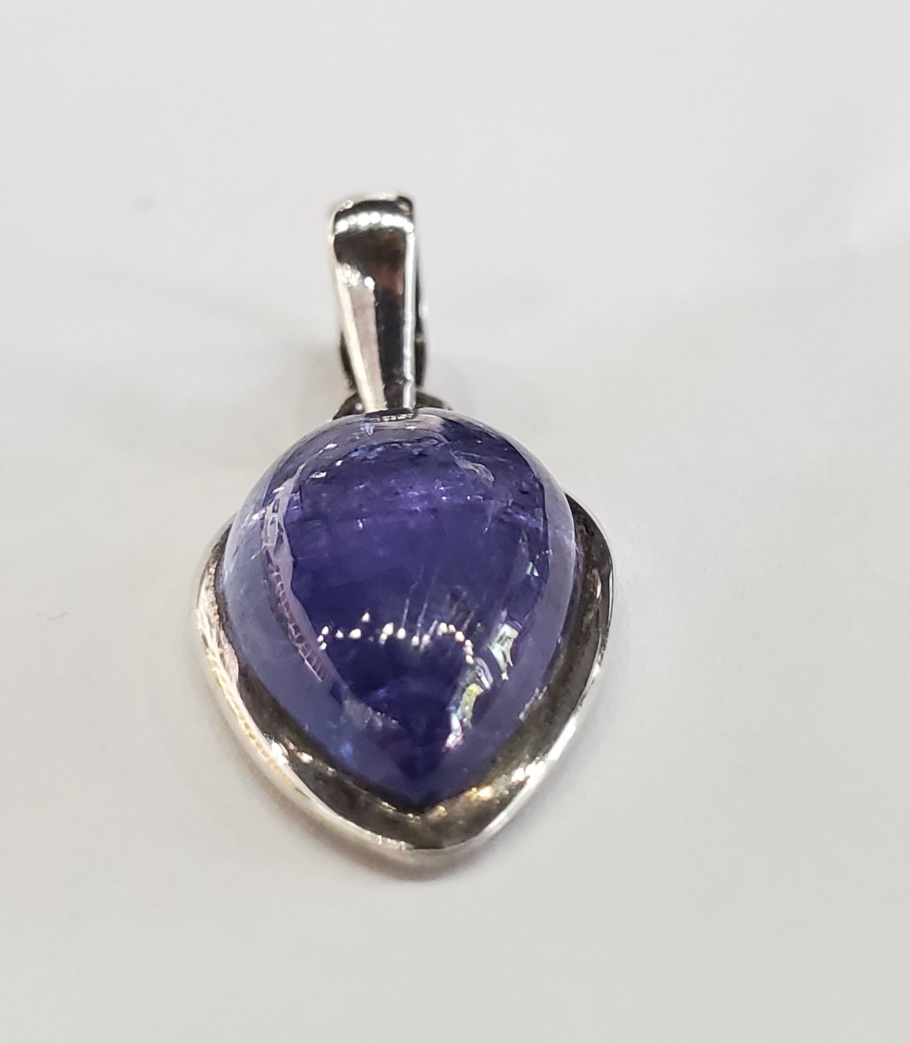 This high-quality tanzanite pendant is set in sterling silver. It weighs 2.4 grams and measures 13 x 12 mm.